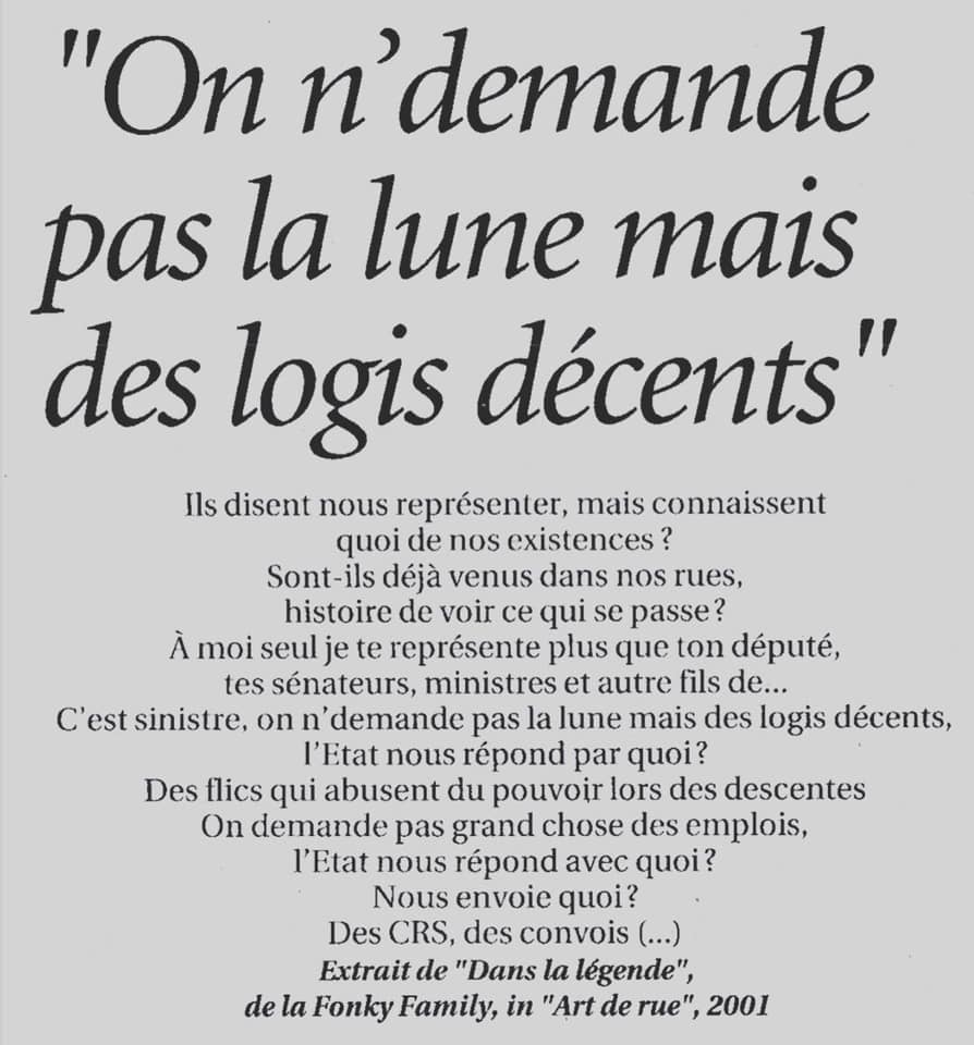 Le rap ressurgit quand le dialogue et les revendications sont nécessaires. Et il n’y a que dans cette ville où l’on voit des plateaux de ce gabarit naître de solidarité. On pense au concert en soutien à Pone et à la maladie de Charcot ou au concert en hommage à Sya Style, beatmaker des Psy4 de la Rime.